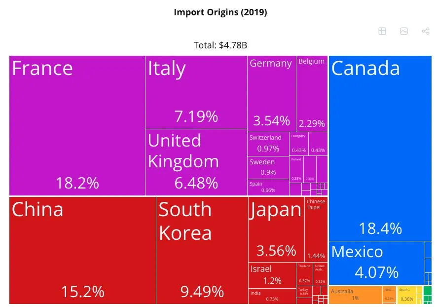 미국의 수입 통계를 봤습니다. 각 이미지는 클릭하시면 크게 보실 수 있어요.